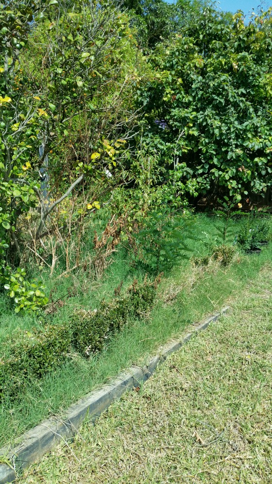 Years before the garden had been planted with box hedge and traditional garden beds full of gardenias, roses and crab apple trees. Over a the years weeds took over so the plants couldn’t even be seen. The lawn became long and patchy. Buffalo grass invaded the garden beds, choking the plants.