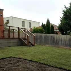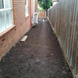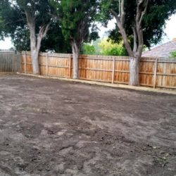 We recently completed a garden rejuvenation in North Balwyn, transforming the backyard from an unusable area of long grass and building debris into an inviting expanse of lawn and lush gardenbeds. After clearing the long grass we levelled the area and constructed garden edging around the fenceline. Then it was time to prepare the ground for instant turf, spreading topsoil over the levelled area and in the gardenbeds.