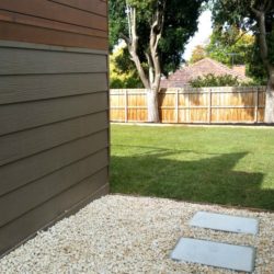 Lastly the side walkway was levelled and a layer of crushed rock put down. Pavers were set on a mortar base and decorative white pebbles spread around the pavers along the length of the walkway.